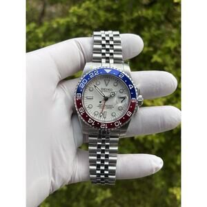 NEW Seiko NH34 GMT 40mm Automatic Watch White Dial Two Tone Ceramic Bezel