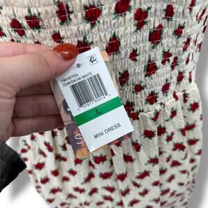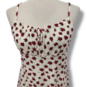 NEW Self Esteem A-Line Dress Size Large Cream Red Rose Print Smocked Sundress