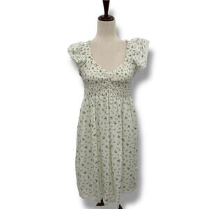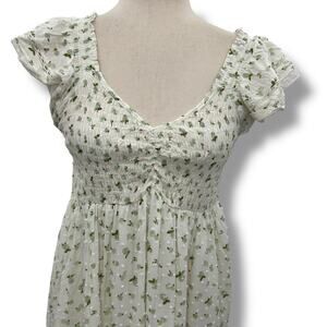 NEW Self Esteem Smocked Floral Dress Large White Green Ruffle Sundress Cottage