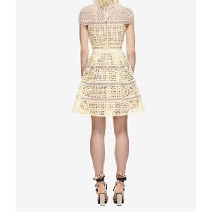 NEW Self-Portrait Crosshatch Paneled Mini Dress in Yellow