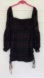 - Sequin details, shirred details, ruffle cuffed sleeves, elastic at shoulders & cuffs, adjustable ties at hem, body lined, back zipper with 2 hook & eye closures, waistband, sheer sleeves, square neck & back