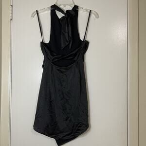 NEW! Selfie Leslie Sonoma Halterneck Faux Wrap Twist Back Mini Dress Black Small