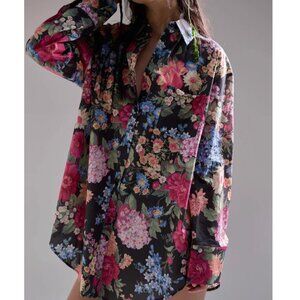 NEW Selkie The Puck Big Blouse Button Down Causal Black Pink Floral