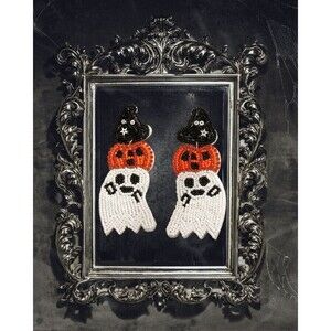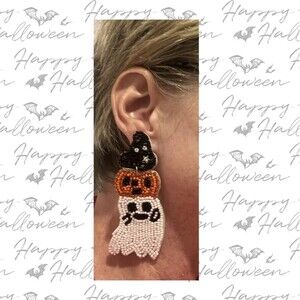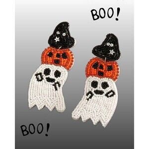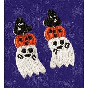 NEW Sequin Beaded Spooky Ghost Halloween Pumpkin Dangle Earrings