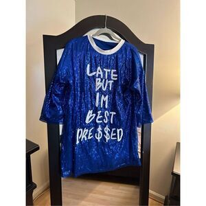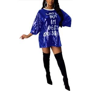 NEW Sequin Glitter Shirt Letter Print 3/4 Sleeve Short Dress Club L