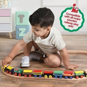 Wooden Toy Train Meets All The Safety Requirements ASTM F963. Safety Tested - Lead Free - Great Gift for Birthday and Holidays for Boys & Girls.