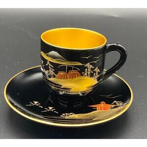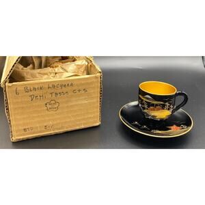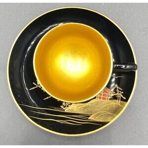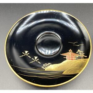 NEW Set 12 VTG Japanese Lacquerware Teacup Saucers Gold black Hand Painted Japan