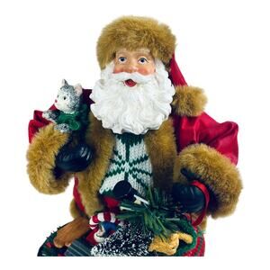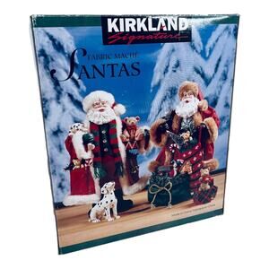 NEW Set 2 Fabric Mache SANTA CLAUS Figurines 4pc Dalmatian Dog Cat Holiday Decor