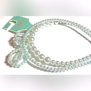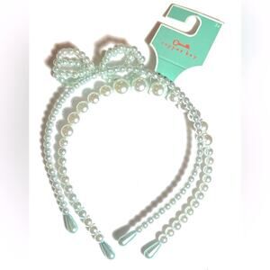NEW Set (2) Copper Key GIRLS HEADBANDS Kids Blue Graduated Faux Pearl & Bow