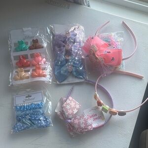 Bright and playful hair accessories by Prince. Includes bows, headbands, and ties in various colors.