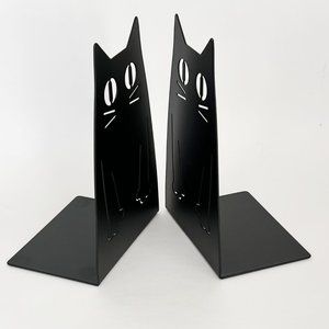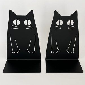 NEW Set of 2 Black Cats Metal Bookends 8"