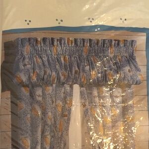 New in original packaging, set of two Classic Winnie The Pooh valences perfect for a nursery room. Design name is Country Days. This is for the valances only, no curtains are included. I took one valance out and partially unfolded it in order to take a picture of the print pattern. These were ordered from JC Penney over 20 years ago and have been in storage ever since.