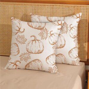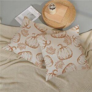 NEW Set of 2 Fall Pillow Covers 20x20 - Burnt Orange Pumpkin & Maple Leaves