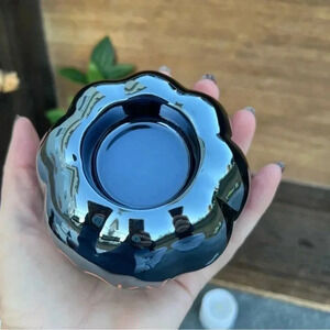 NEW Set of (3) THREE - Large Black Luster Pearlescent Rae Dunn BOO/SPOOKY/HAUNTED Fun Pumpkin Shaped Ceramic Tea Light Holders