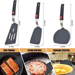 3 Pack Spatulas for Nonstick Cookware: Our silicone spatula set is made of food-grade silicone, and the soft silicone spatula head will not scratch non-stick pots. Perfect for flipping eggs, pancakes, fishs, and burgers