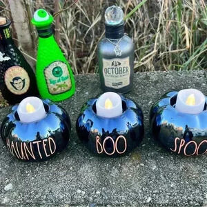 NEW Set of (3)Rae Dunn BOO/SPOOKY/HAUNTED pumpkin candle Holders WITHOUT candles