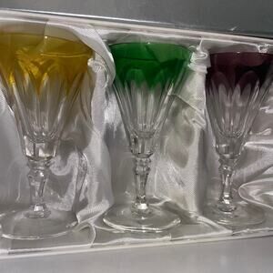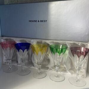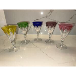 NEW Set of 5 Hungarian Crystal Colorful Cordial Liquor Glasses