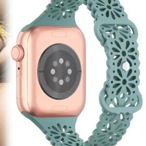 Slim lace silicone apple watch band with posh flower pattern design. The strap is hollowed out.