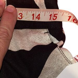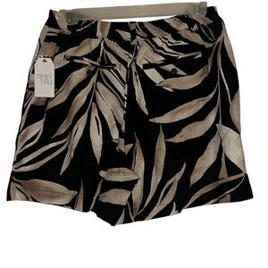 Time and Tru Tropical Print black and Tan Linen Shorts Ladies size 6. Shirts measure 30” waist , Total Length 14” and leg length is 5”” long .
