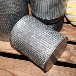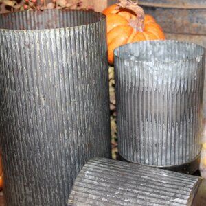 NEW Set of Rustic Corrugated Metal Zinc Farmhouse Cylinder Can Vases Pots