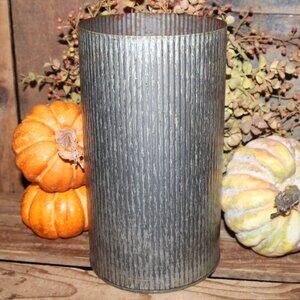 metal, can, vase, ribbed, farmhouse, zinc, rustic, planter, pot