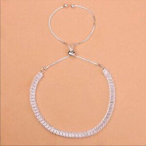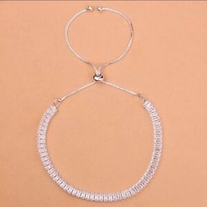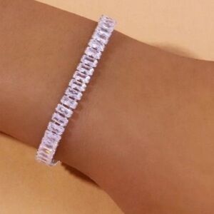NEW Set of TWO SILVER Chain Clear Baguette Cut Crystals Dainty Bracelets