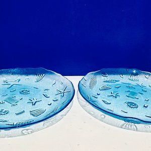NEW… Set of Two [2] Glass Sea Shell Plates, by Beachcombers, 11.25” Approximate