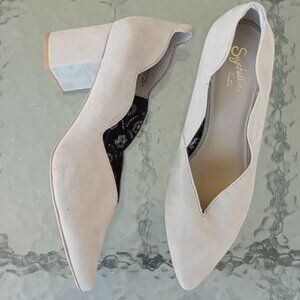 NEW Seychelles Cascade Gray Suede Scalloped Point Toe Pumps Heels Womens…