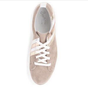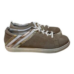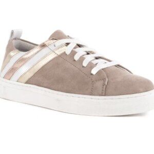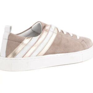 NEW Seychelles Stand Out Taupe Metallic Rose Gold & White Suede Sneakers Sz. 13
