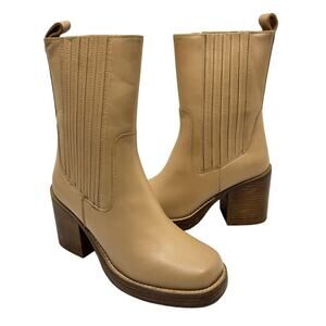 NEW Seychelles Sweet Escape Tan Leather Pull On Block Heel Square Toe Boots