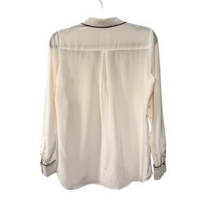 Sezane Elisa Ivory Silk Blouse w Black Piping
