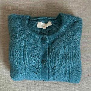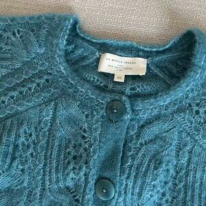 NEW Sezane Alma Cardigan XSmall Peacock Blue Kid Mohair Sweater Knit French