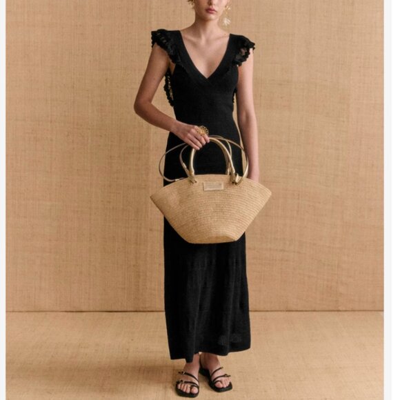 NEW Sezane Aphrodite Midi Dress Small Black Noir Vacation Knit French Classic