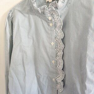 Item Description: Blue ecru stripe Chlo lace trim button down blouse