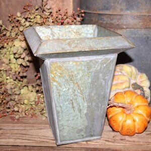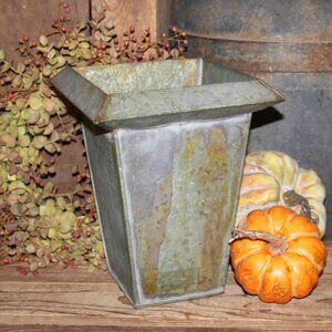 NEW 9.75" tall x 8" deep/wide galvanized metal farmhouse planter bucket pot with awesome shabby, aged patina. Perfect piece for French Country or farmhouse decor!