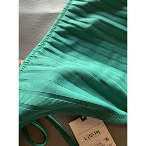 Shade & Shore low coverage bikini bottom. Size Large. Tie sides/strings. Solid emerald green with ribbed stripes. BNWT.