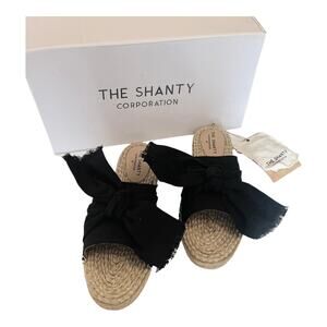 NEW Shanty SHACK SLIDES Women's Slip On SHOES 40, US 9 Black Linen Bow Sandals - NEW In Box!