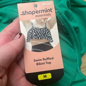 NEW Shapermint Women's M Swim Ruffled Bikini Top Green Bathing Suit Summer Beach