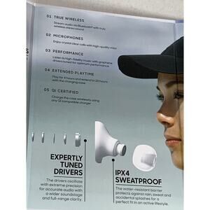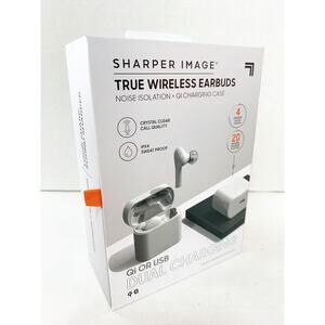 Sharper Image True Wireless Earbuds with Noise Isolation and Qi Charging Case, new in original box. MSRP $39.99
