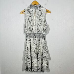 NEW! She + Sky Mock Neck Snake Print Dress Tiered Sleeveless Casual Ruffle - S