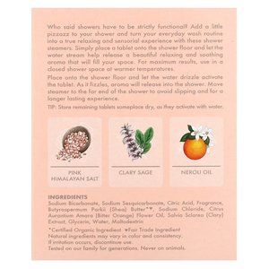SheaMoisture Pink Himalayan Salt Shower Steamers is for all skin types and even the most sensitive skin. This naturally inspired, perfect aroma filled Shower Steamer will add a little pizzazz to your shower and turn your everyday Bath and Body routine into a true relaxing and sensorial experience. Simply place a tablet onto the shower floor and let the water stream help release a beautiful relaxing and soothing aroma that will fill your space. For maximum results, use in a closed shower space at warmer temperatures. Place onto the shower floor and let the water drizzle activate the tablet. As it fizzles, aroma will release into the shower. Move steamer to the far end of the shower to avoid slipping and for a longer lasting experience. TIP: Store remaining tablets someplace dry, as they activate with water. SheaMoisture's luxury bath products, like this relaxing shower steamers, is formulated with no parabens, no phthalates, no mineral oil and no sulfates. Cruelty Free Skin Care. Our Story: SheaMoisture is the legacy of Sofi Tucker, a pioneering mother of four and entrepreneur who sold Shea Butter, African Black Soap and homemade beauty preparations in Sierra Leone in 1912. We honor her vision by continuing to formulate with Raw Shea Butter handcrafted by women in Africa.