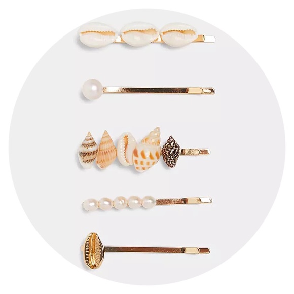 Set of 5 natural shell barettes. Feminine and understated, these are a must-have for your all-season wardrobe.