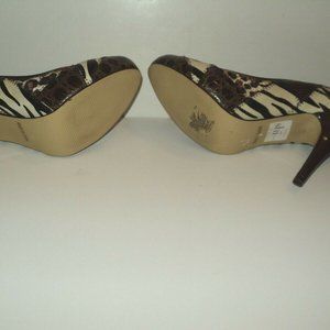 NEW Shi by Journeys Icora Heels Size 7.5 Patched Animal Print Stilettos Shoes