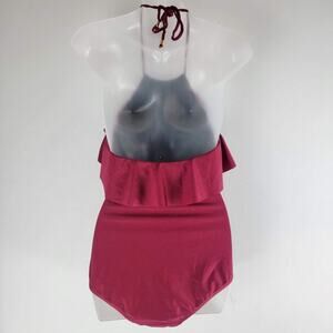 NEW Shoshanna Swimwear Syrah Ruffle Halter 1 Piece Red Size 4