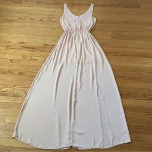 Show Me Your MuMu Kendall Sleeveless V-neck Nude Pink Chiffon One Side Slit Pull Over Maxi Dress Bridesmaids Dress