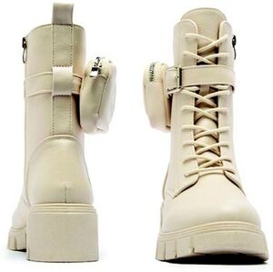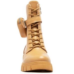 NEW Side Pouch Pocket Combat Boot Ankle Booties Textured Platform Lace-Up