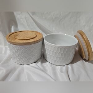 NEW Signature Housewares Incorporated Ceramic Stackable Canister Wood Lid White