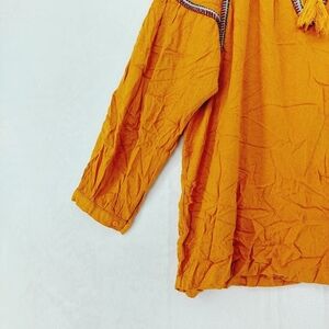 NEW Signature Studio Mustard Orange Boho Embroidered Peasant Loose Blouse P1983
