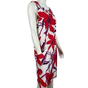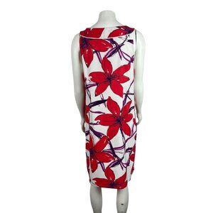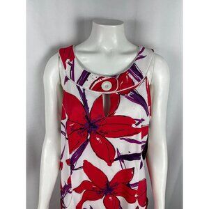 NEW Signature by Sangria Sheath Dress 12 Sleeveless Red White Floral Tropical