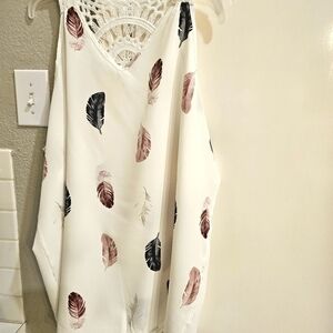 Pretty floral tank w white background & a leaf pattern In mauve, grays, & silvers